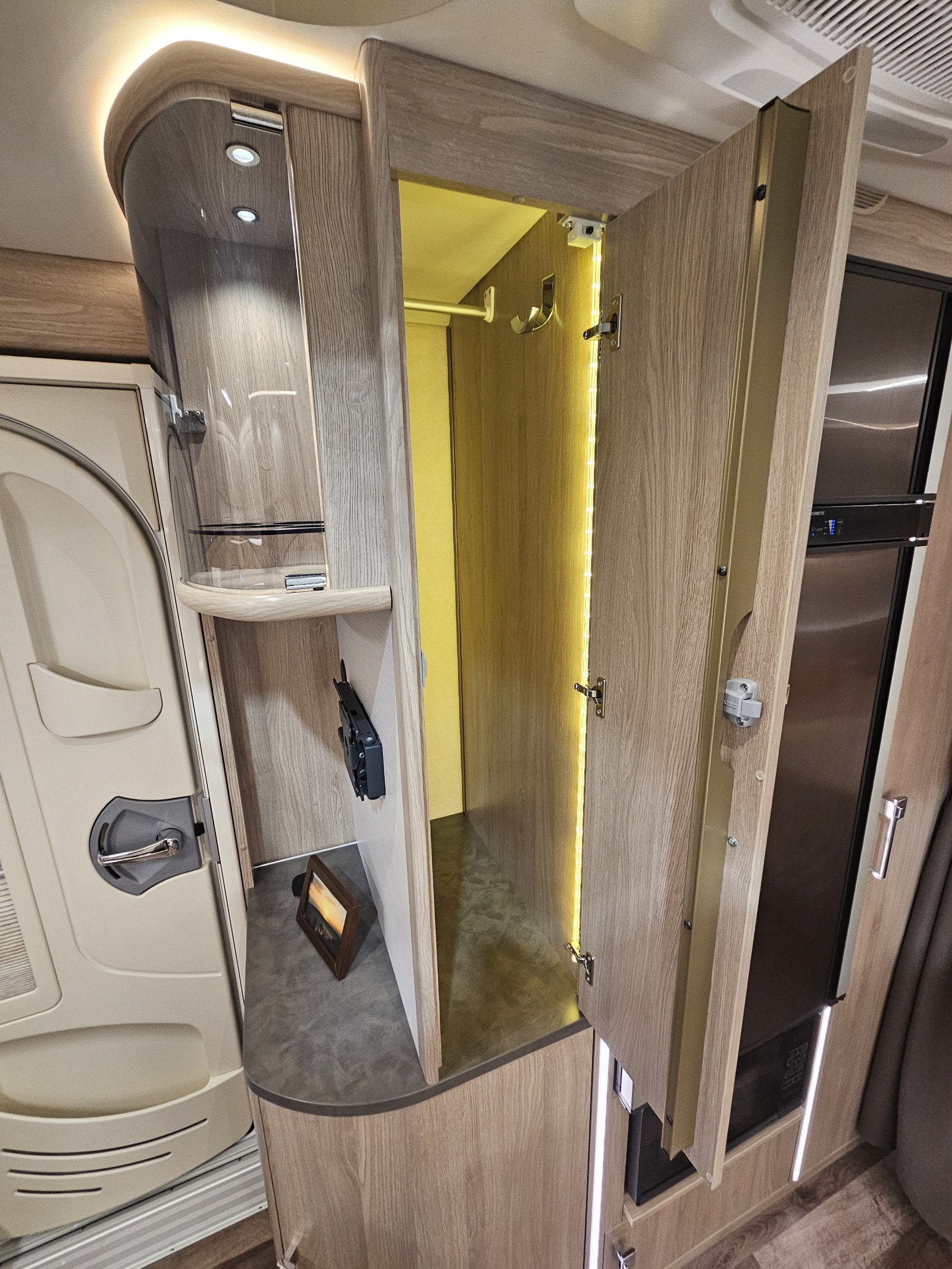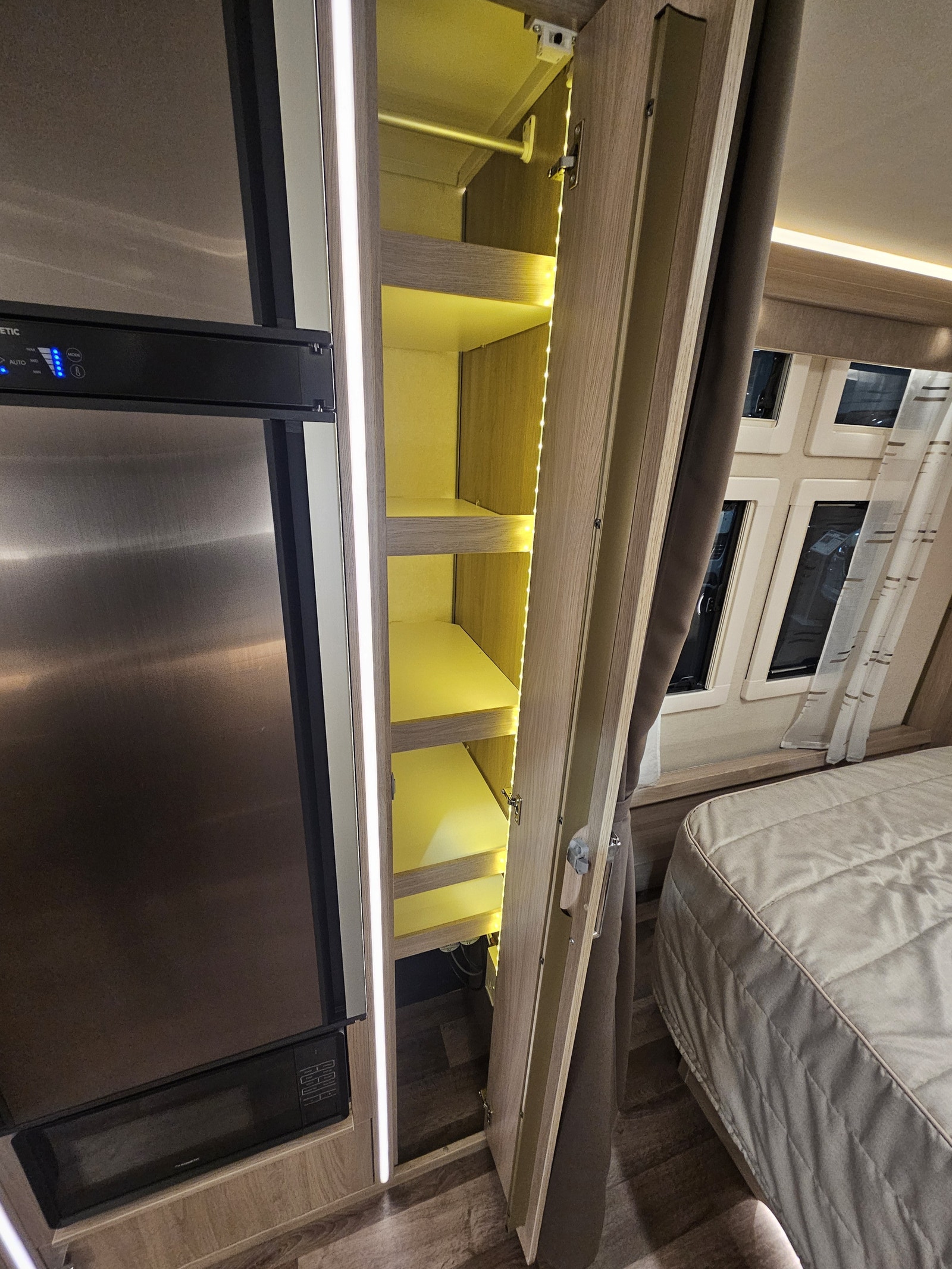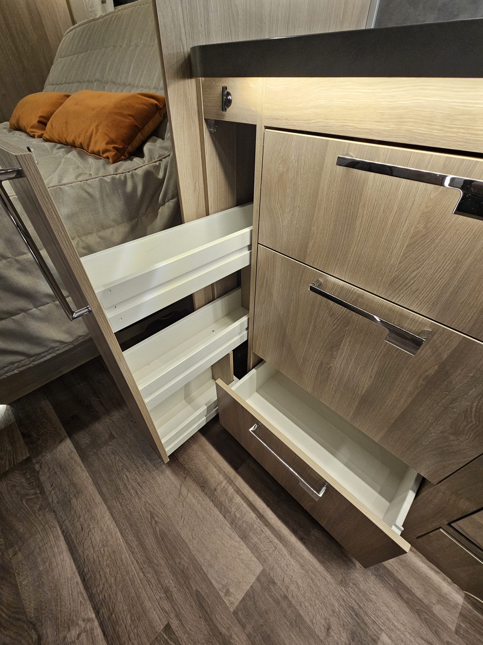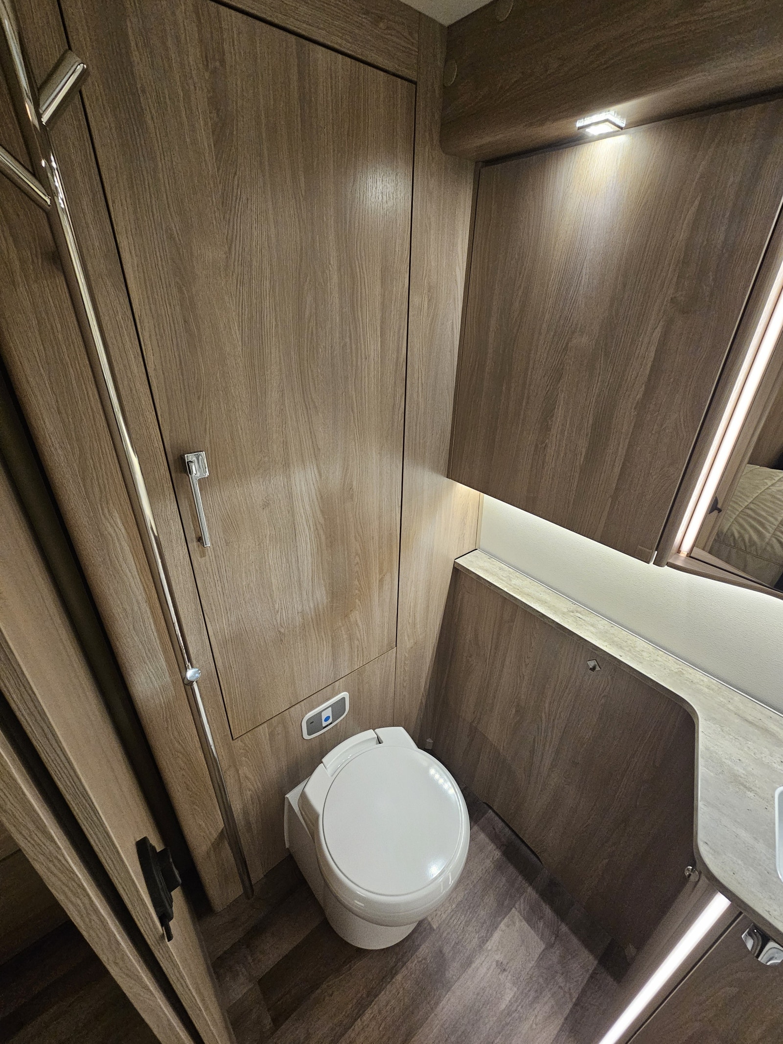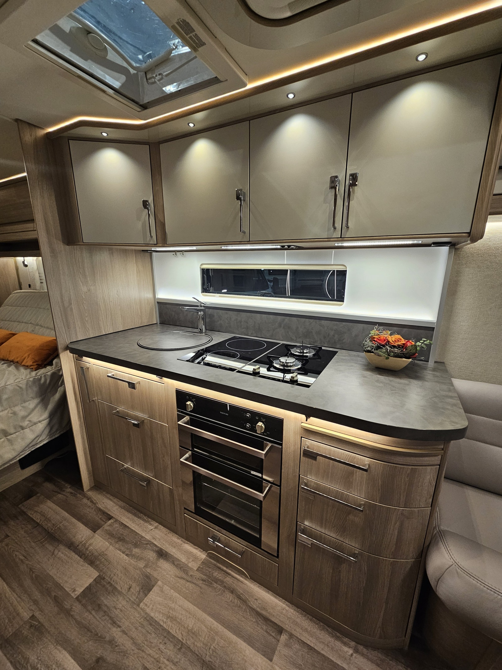 Denne campingvognen har en komfortabel queen size-seng som gir romslig plass til to personer – Stort bad på bakvegg med egen stor dusj samt en garderobeløsning. I tillegg kan sittegruppen enkelt omgjøres til ekstra sengeplasser, noe som gjør at vognen totalt kan huse opptil 4 personer.